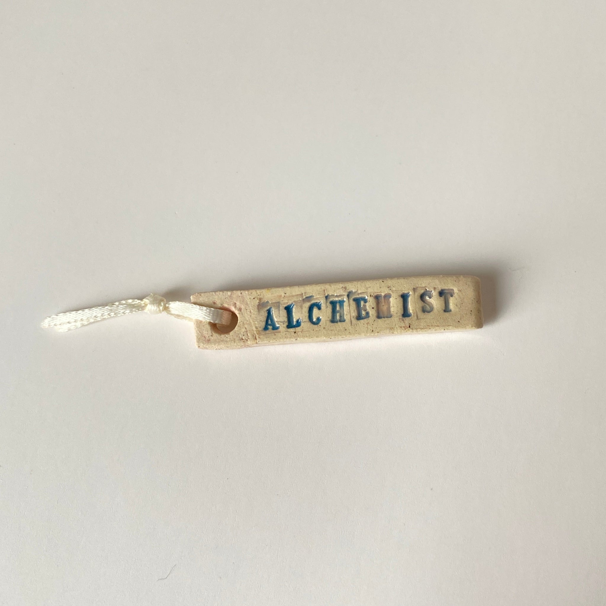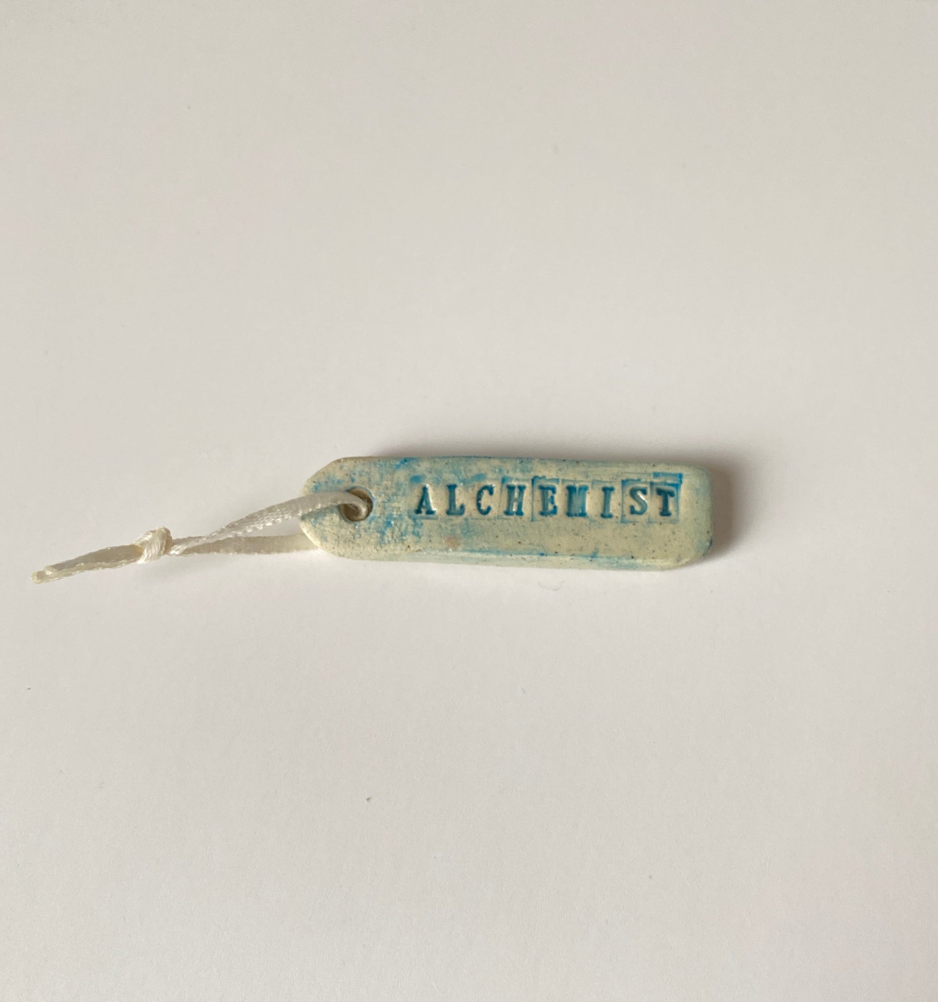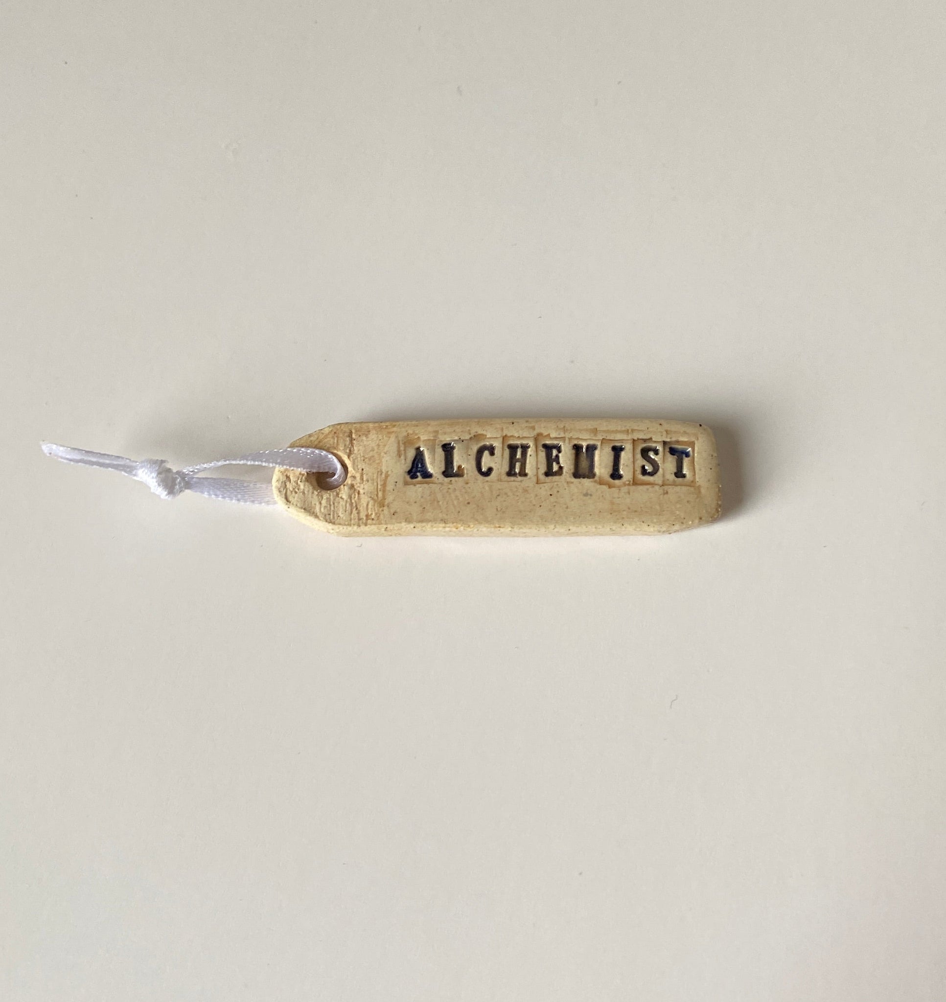 ceramic ALCHEMIST word charm, for your keys, your bag, rear view mirror or anywhere else you need a lucky charm