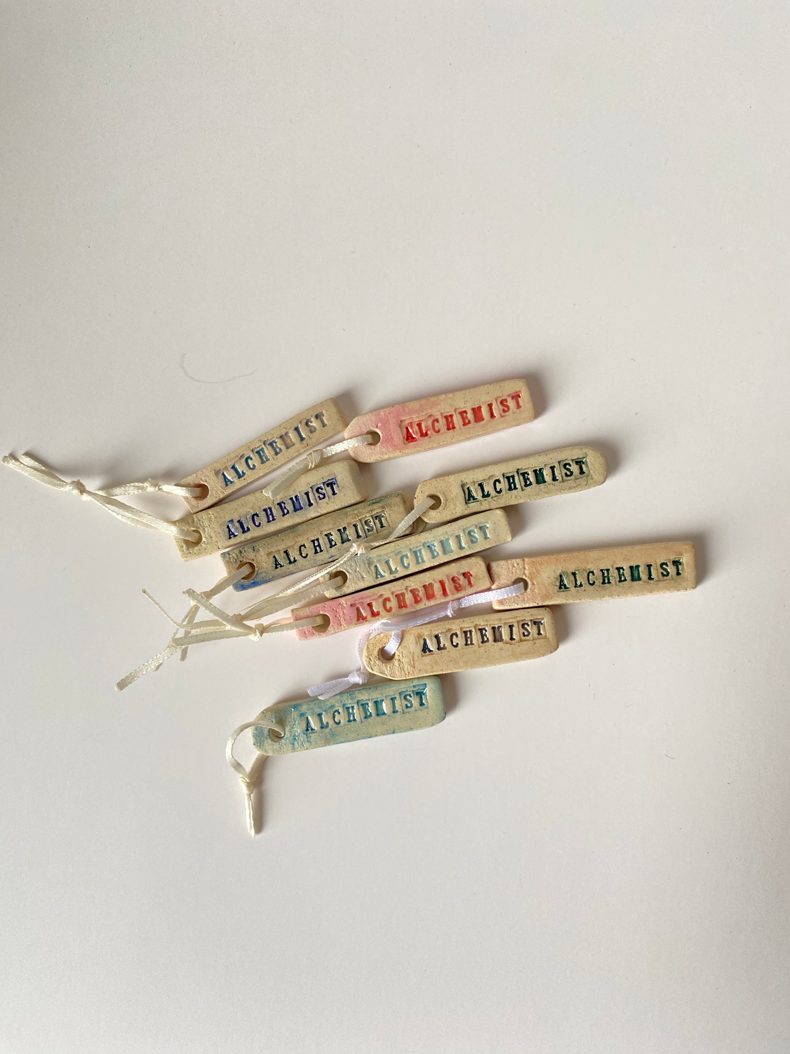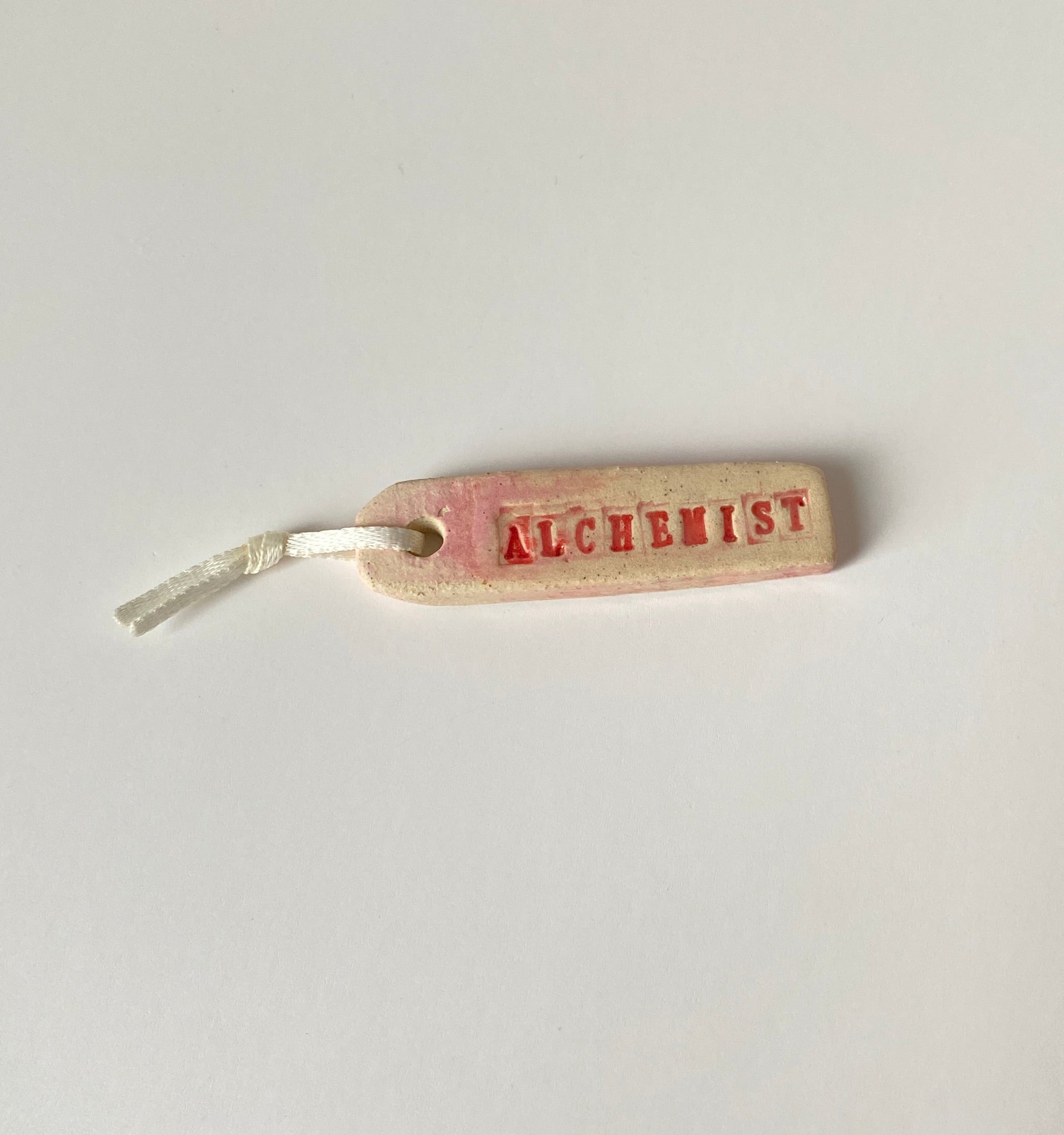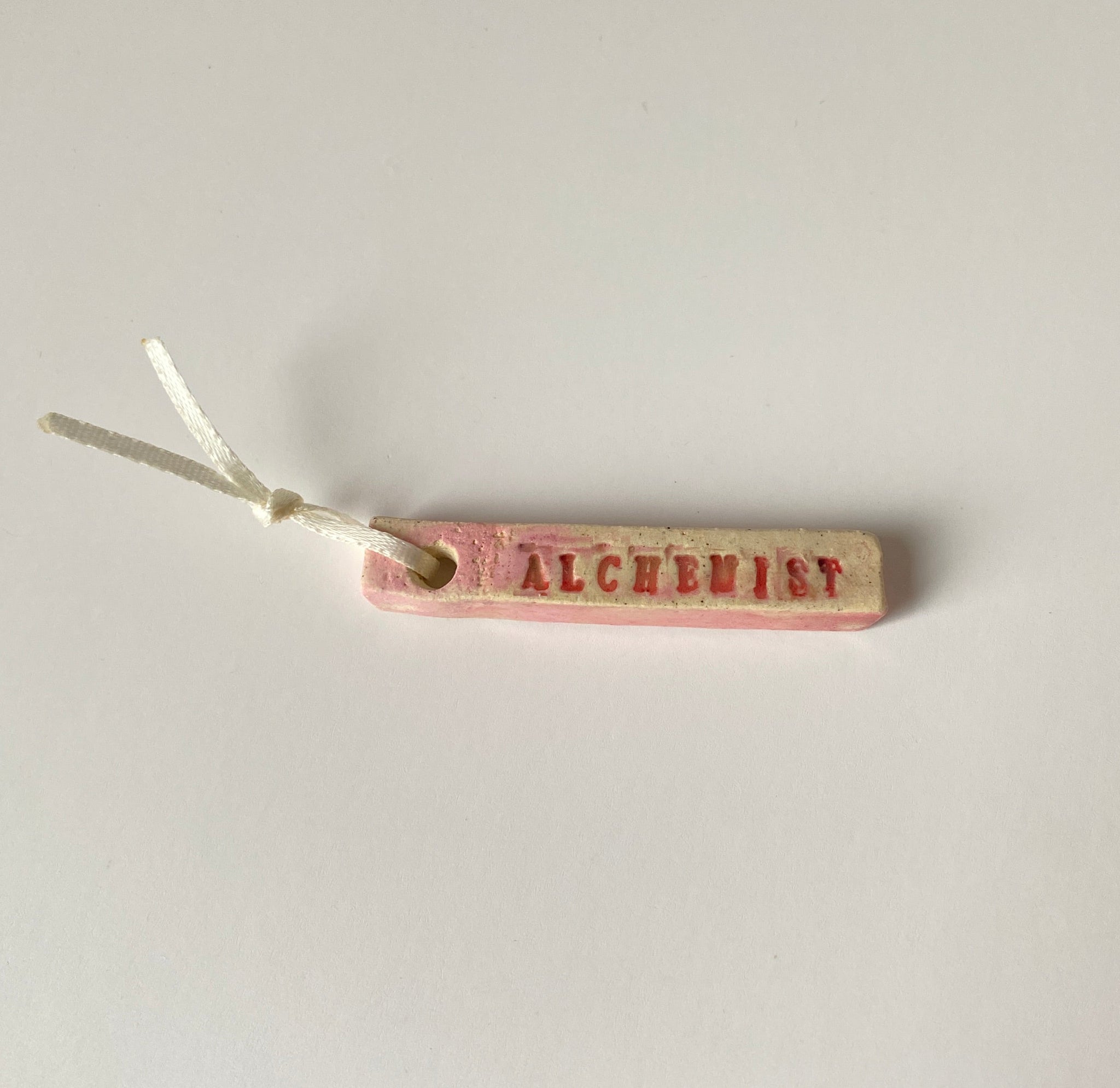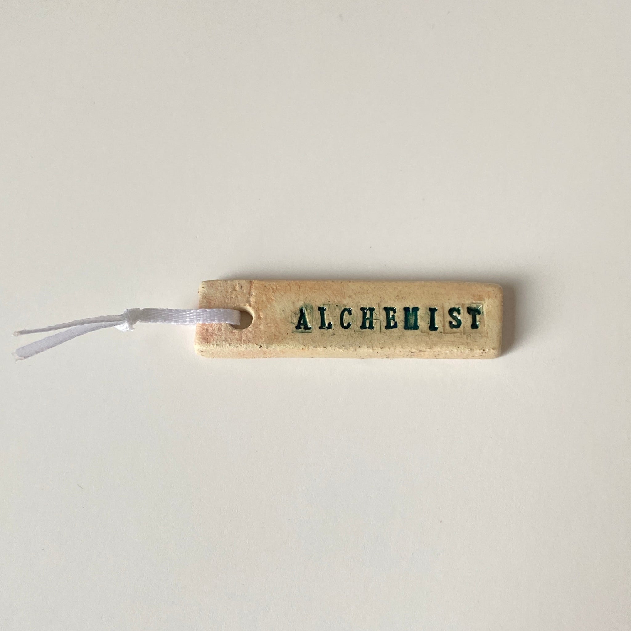 ceramic ALCHEMIST word charm, for your keys, your bag, rear view mirror or anywhere else you need a lucky charm