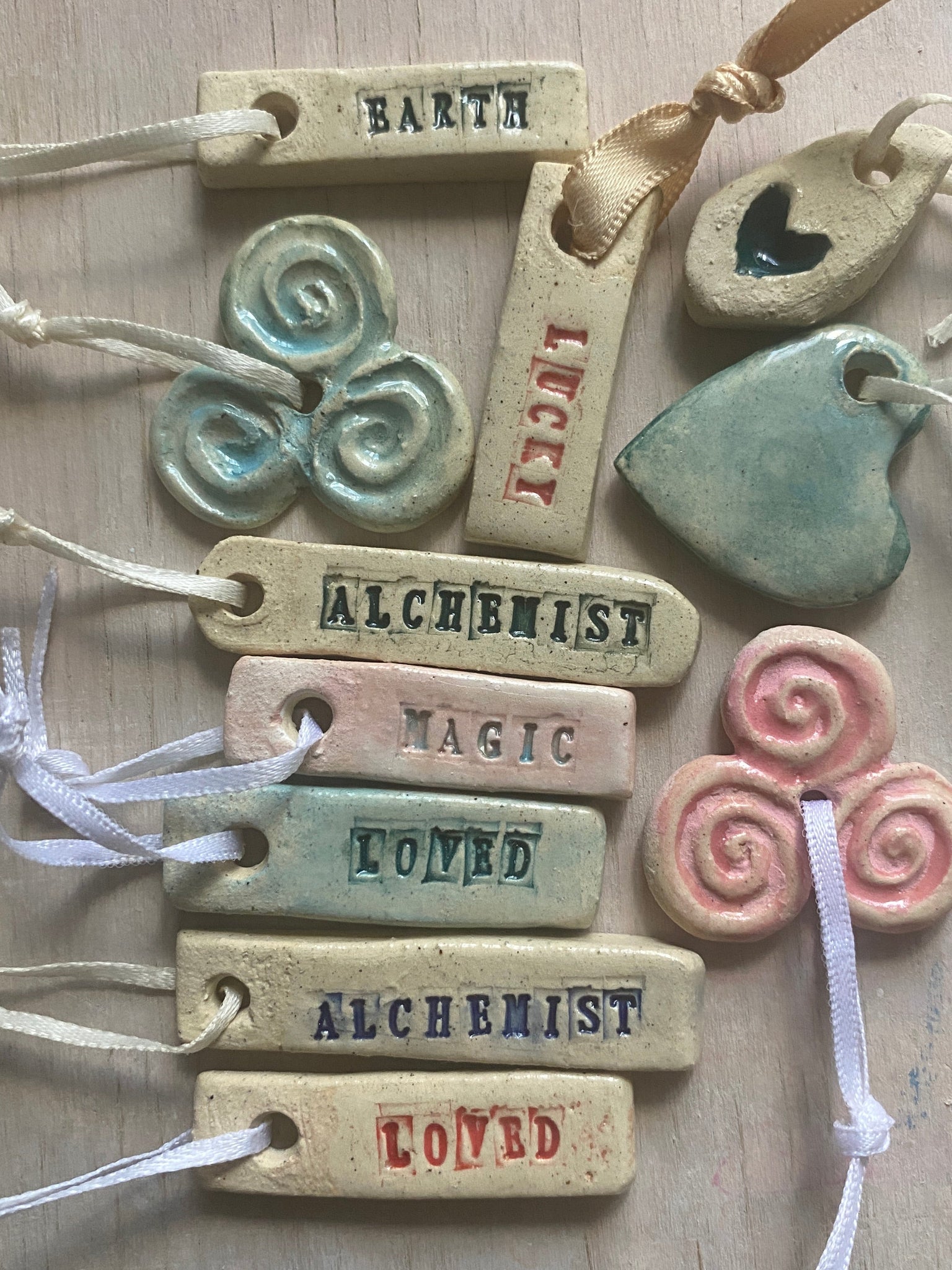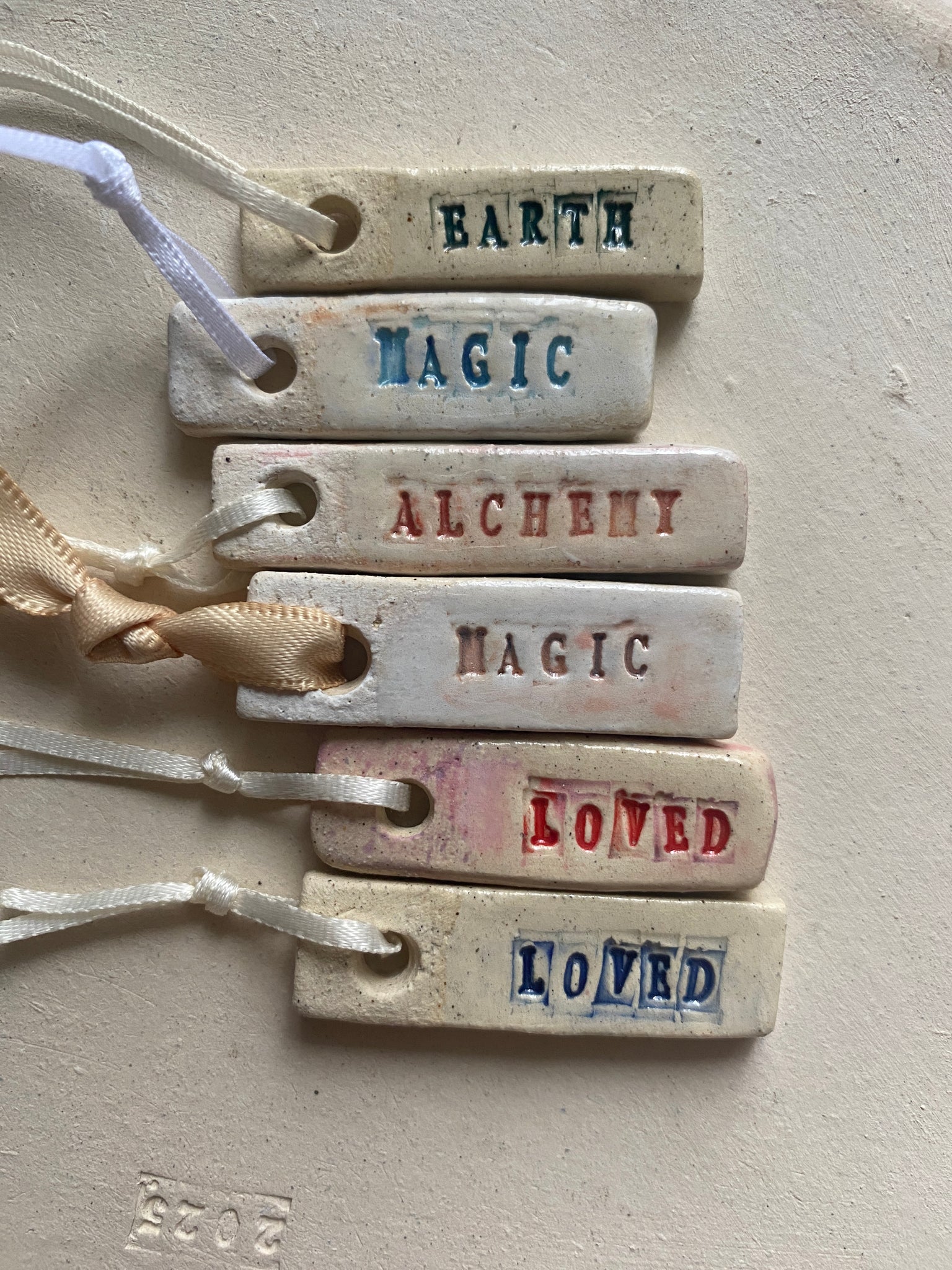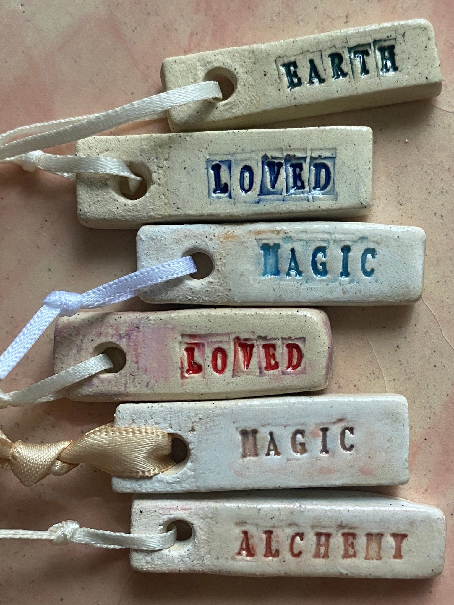 Introducing my Ceramic Intention Charms — tiny hand-made talismans shaped in clay and imprinted with a word you choose. A word to anchor the new year: something to invite in, focus on, or remember. Use it as: