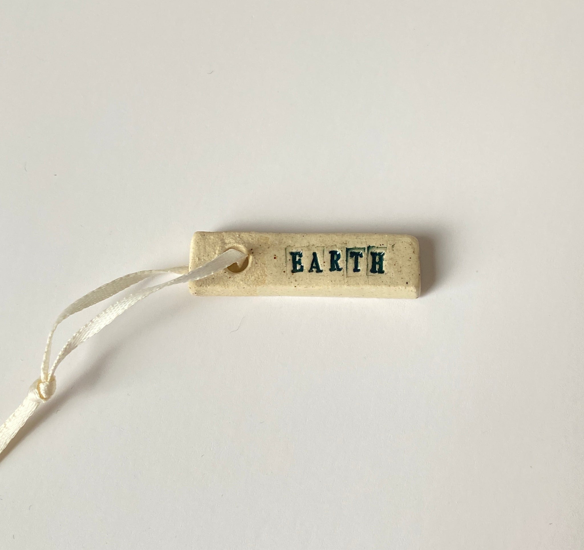 ceramic EARTH word charm, for your keys, your bag, rear view mirror or anywhere else you need a lucky charm