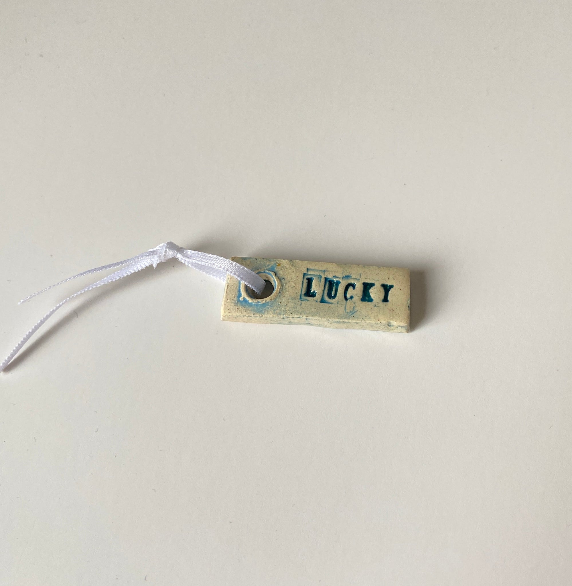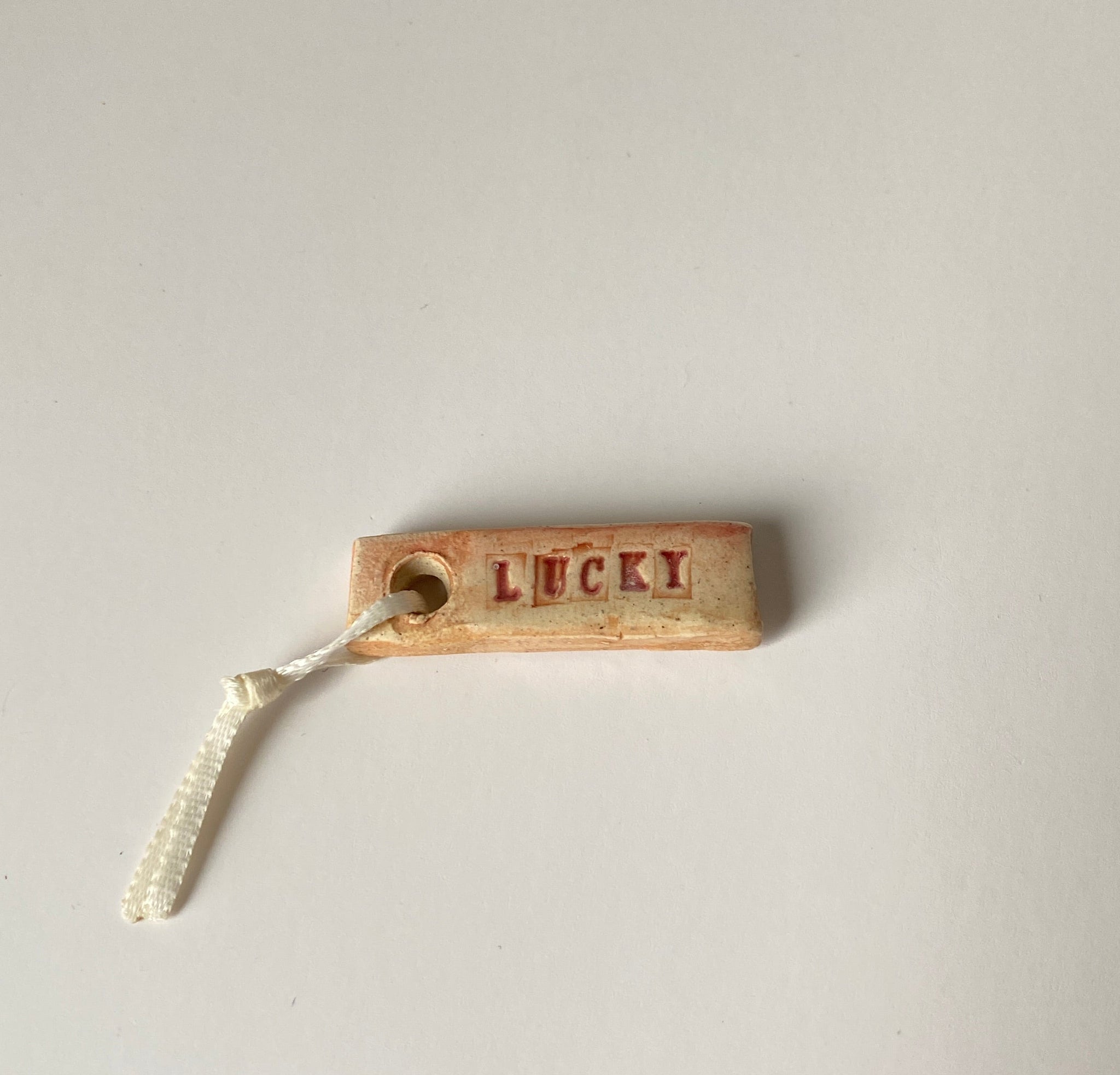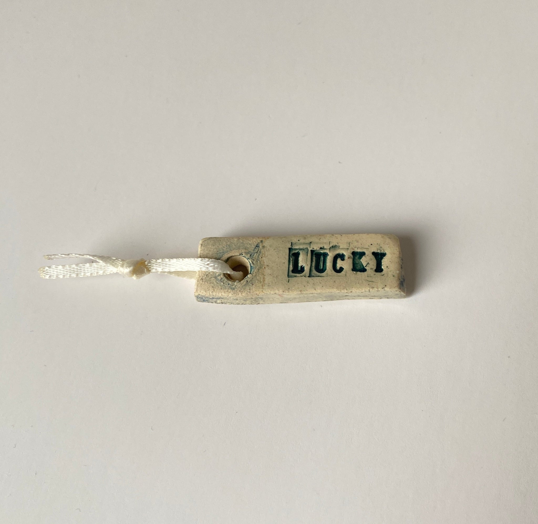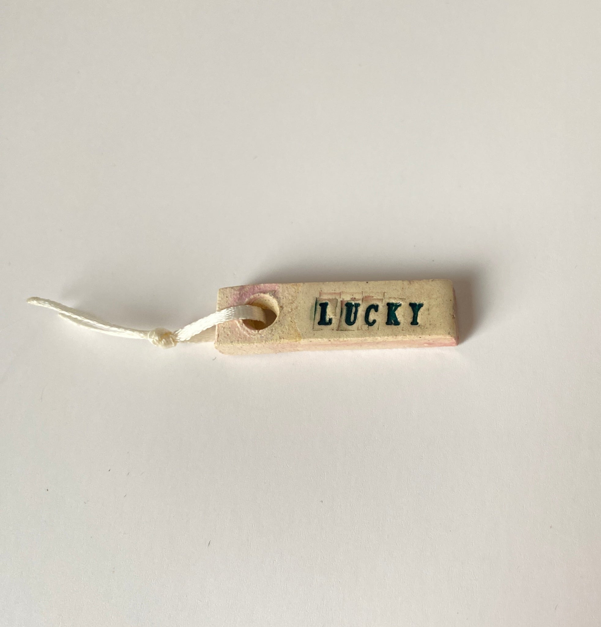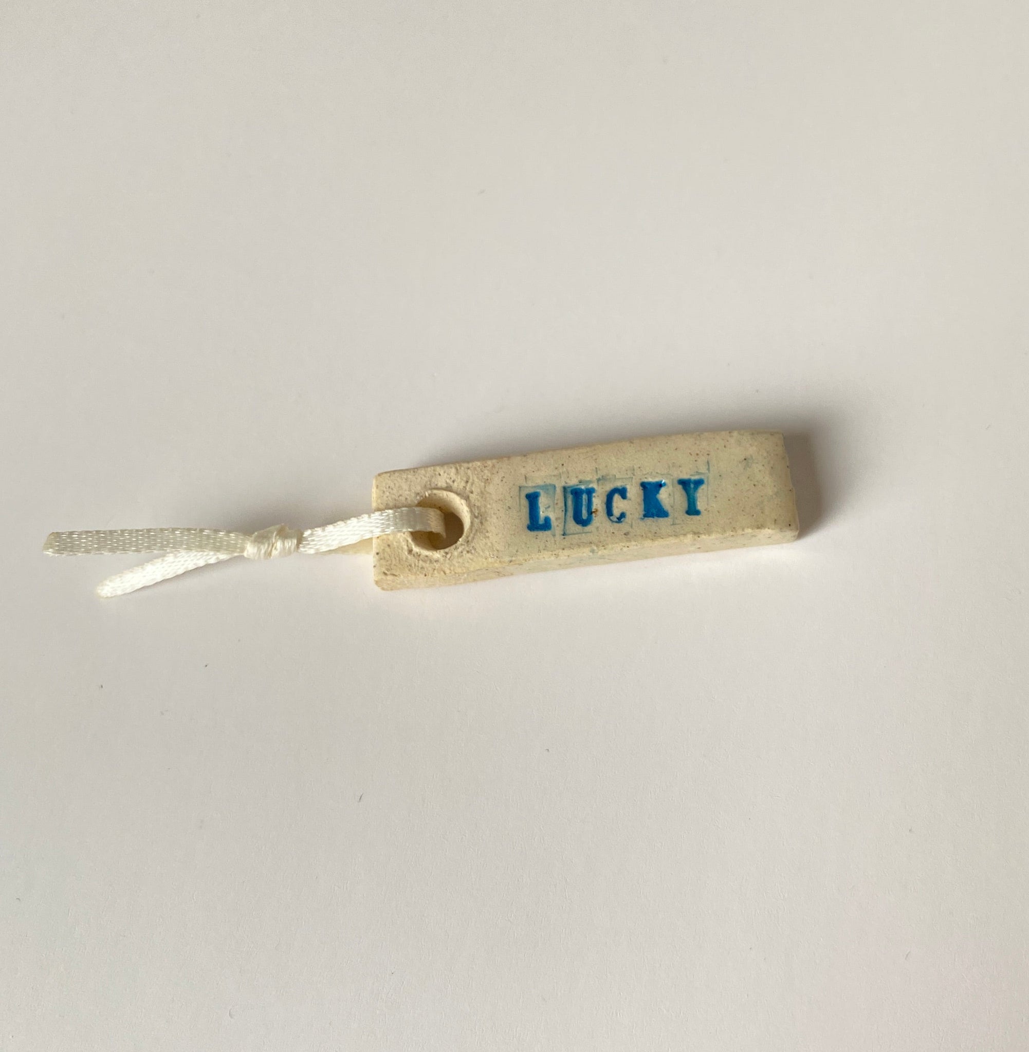 ceramic LUCKY word charm, for your keys, your bag, rear view mirror or anywhere else you need a lucky charm