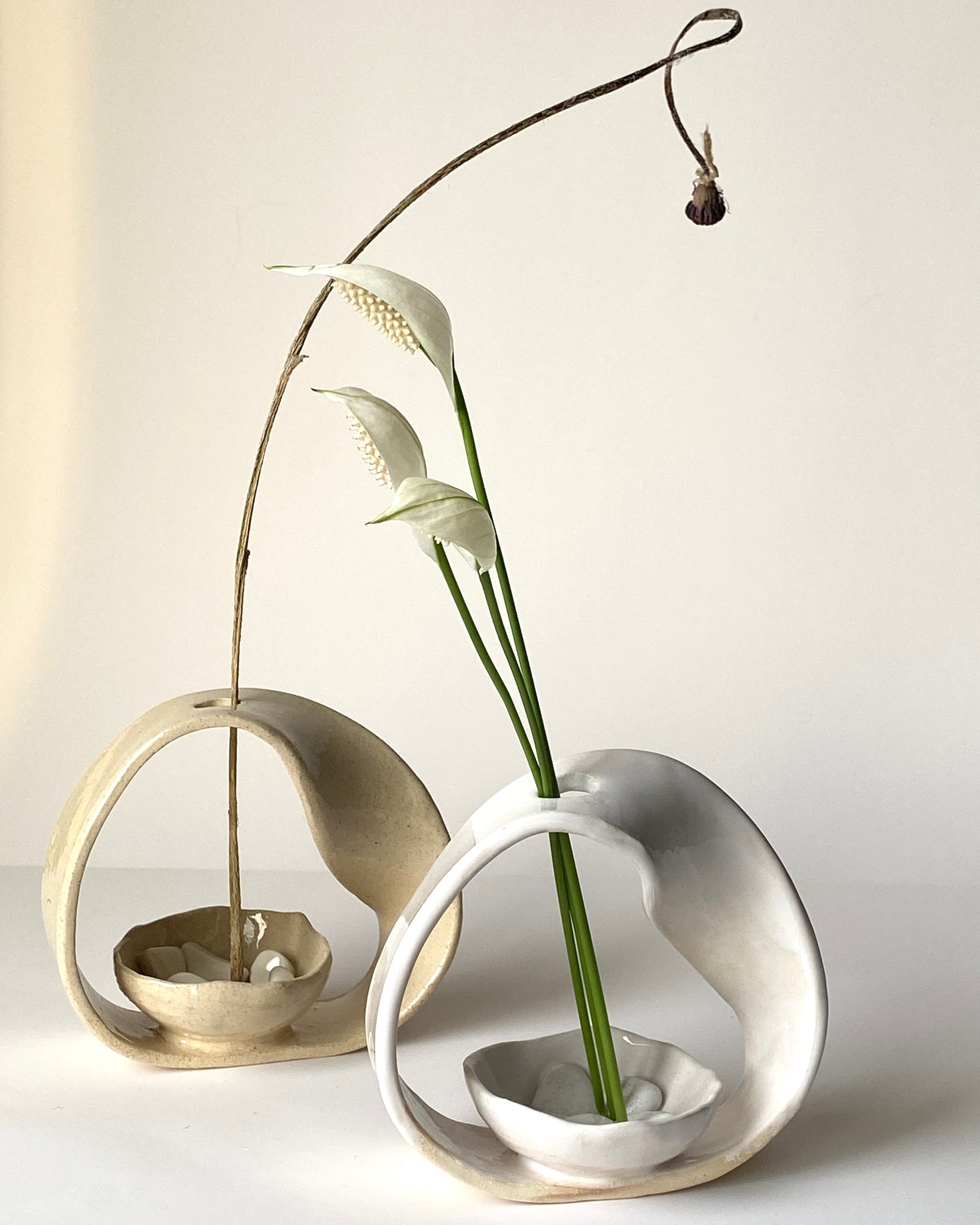 Next generation stem holder is a sculptural, versatile piece that is designed for fresh or dry arrangements.